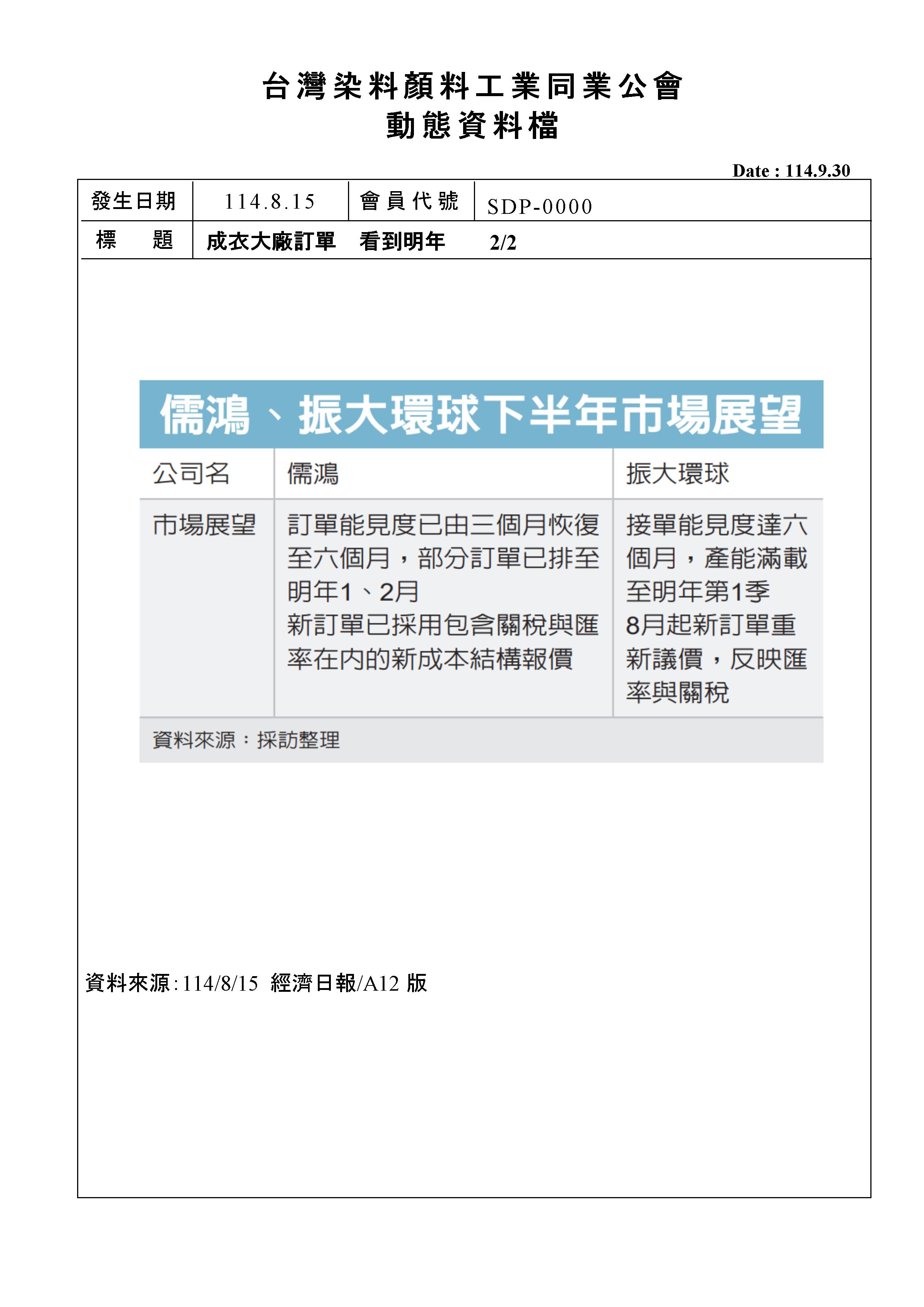 <動態消息> 成衣大廠訂單 看到明年