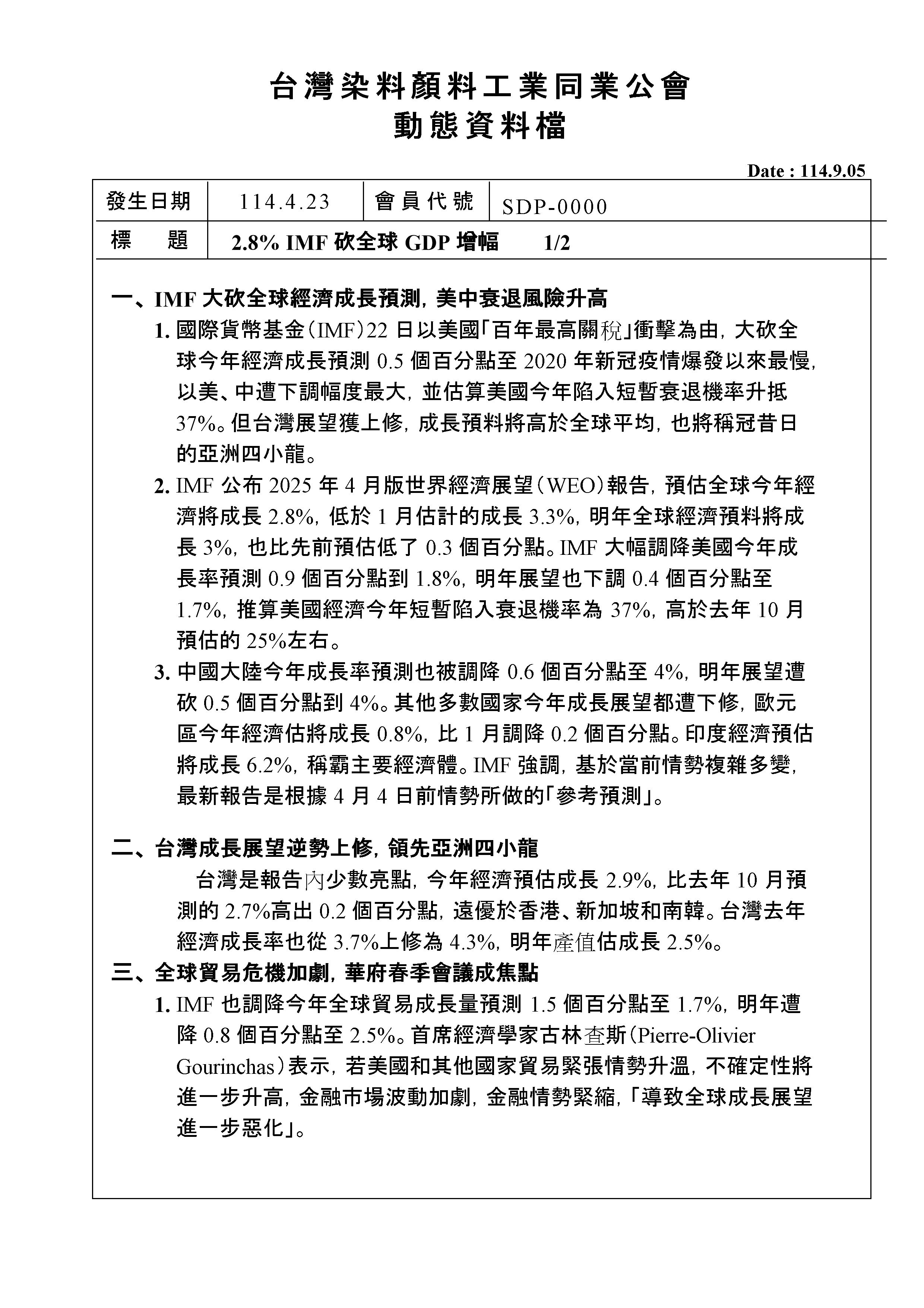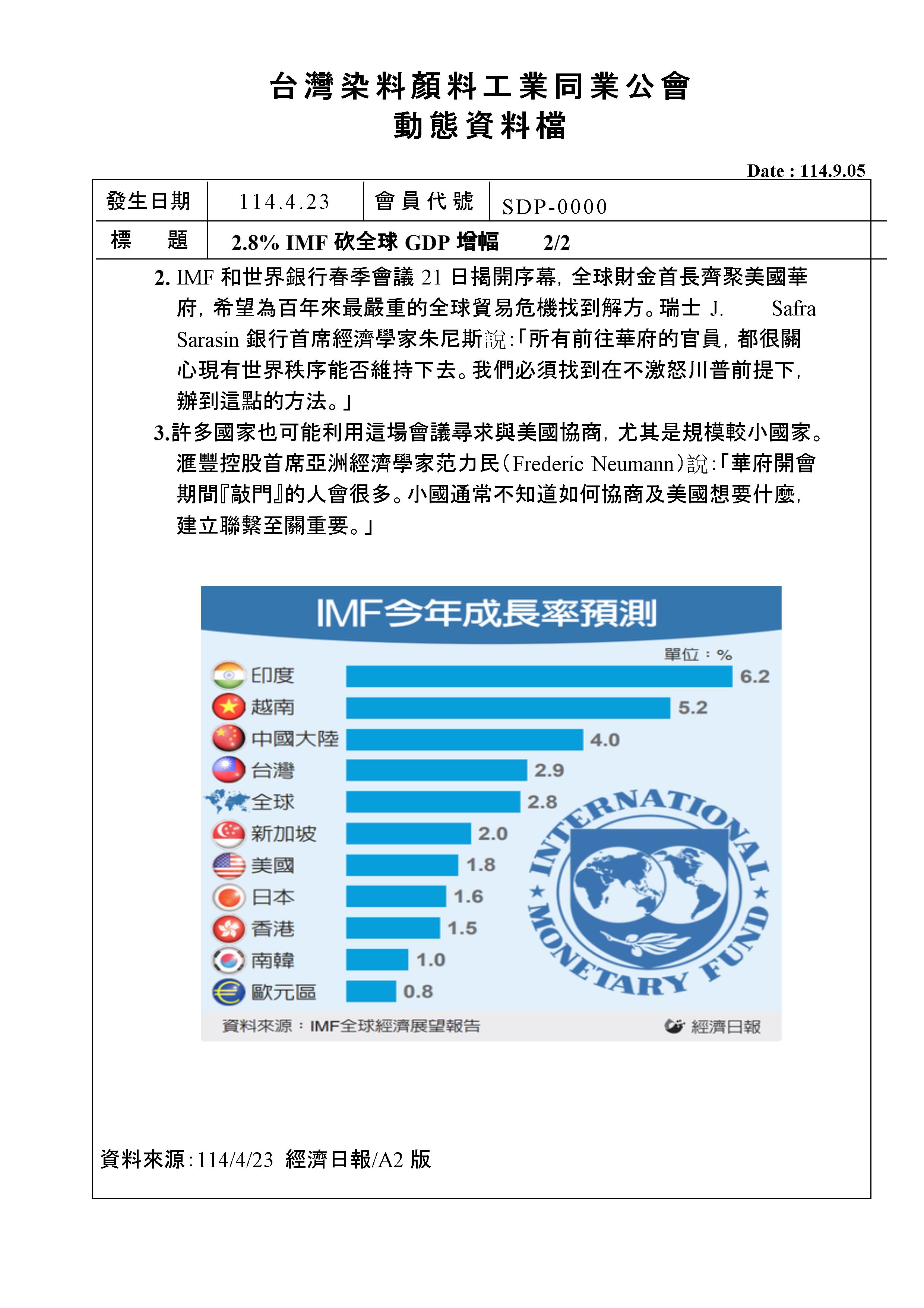 <動態消息> 2.8% IMF砍全球GDP增幅