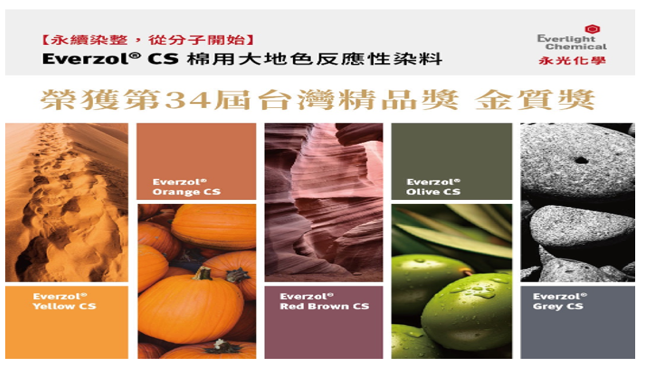 恭賀!!! 永光化學「棉用反應性大地色染料Everzol CS系列」,榮獲2026「台灣精品金質獎」的最高榮譽!